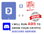 Run ads for crypto and game discord server to gain active ...